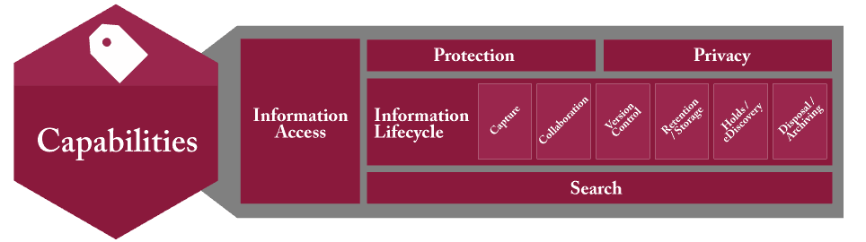 Having located ‘Architecture’ among the IGIM diagrams, further examination of the diagrams led to the role of records retention located under Capabilities within the IGIM model, shown in Figure 3.