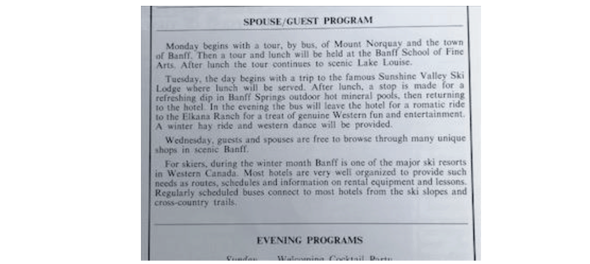 The Conference was hosted in Banff, Alberta mid-winter, February 4 – 6, 1980. The logistics of shuttling participants to and from the location must’ve been staggering. However, the logistics would have provided an opportunity for immediate networking!